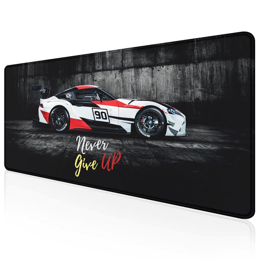 Never Give Up Racing Car Stitched Desk Mat | Large Gaming & Office Mouse Pad | Non-Slip Rubber Base | Extended Desk Mat for Keyboard & Laptop