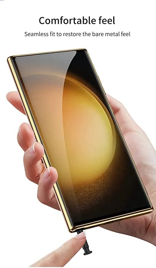 Slim Glass with Leatherette Electroplated Back Case Cover for Samsung Galaxy S23 Ultra 5G / Galaxy S23 Ultra Case Cover ƒ?? (Black | Leather)