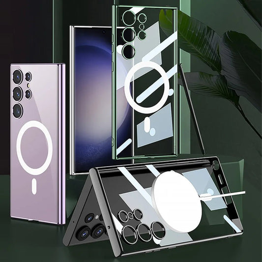 Transparent Electroplated Slim Magnetic Charging Support Case/Cover for Samsung Galaxy S23 Ultra 5g / Samsung Galaxy S23 Ultra 5g ƒ?? Rubber