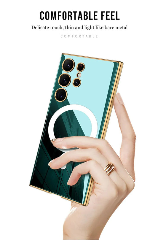 Decase Magnetic Case for Samsung Galaxy S23 Ultra Case [Compatible with MagSafe] Camera Lens Protection Plating Luxury Cover for Women Men Clear Soft TPU Shockproof Protective Phone Case, Green