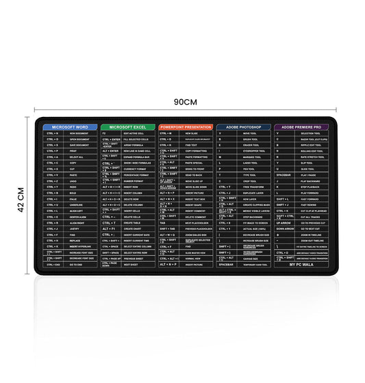 MYPCWALA Shortcut Keyboard Desk Mat – Excel, Word, PowerPoint, Photoshop & Premiere Pro Cheat Sheet Mouse Pad (90×42 cm)