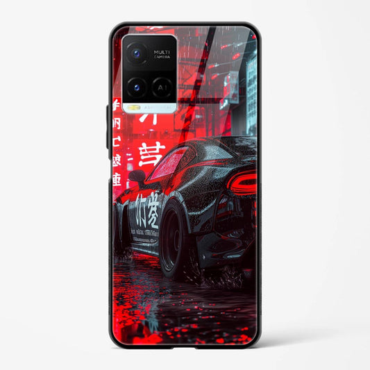 Luxury Car Printed Design Glass Mobile Back Case Compatible for Vivo Y33s TPU Shock-Resistant Soft Edge | 360° Protection
