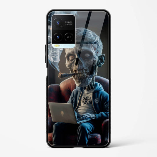 Skeleton Printed Design Glass Mobile Back Case Compatible for Vivo Y33s TPU Shock-Resistant Soft Edge | 360° Protection