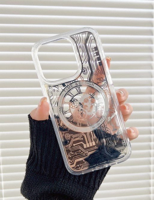 Magnetic Mechanical Texture Case For iPhone 14 Pro Transparent Shell Magsafe (Gold)