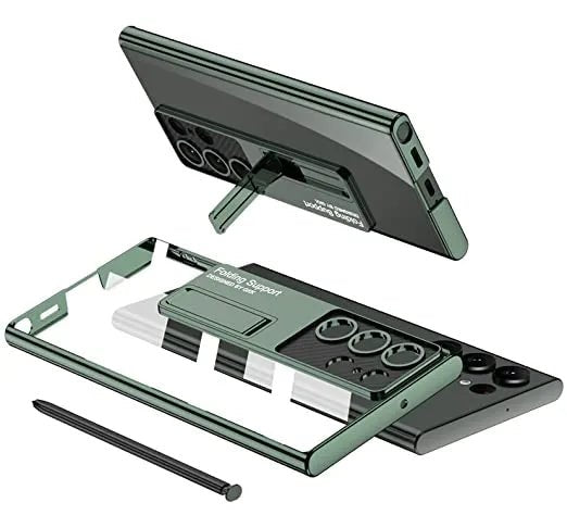 Polycarbonate Transparent Slim Back Case/Cover With Kick Stand For Samsung Galaxy S23 Ultra 5G Case Cover ƒ?? (Clear Green)